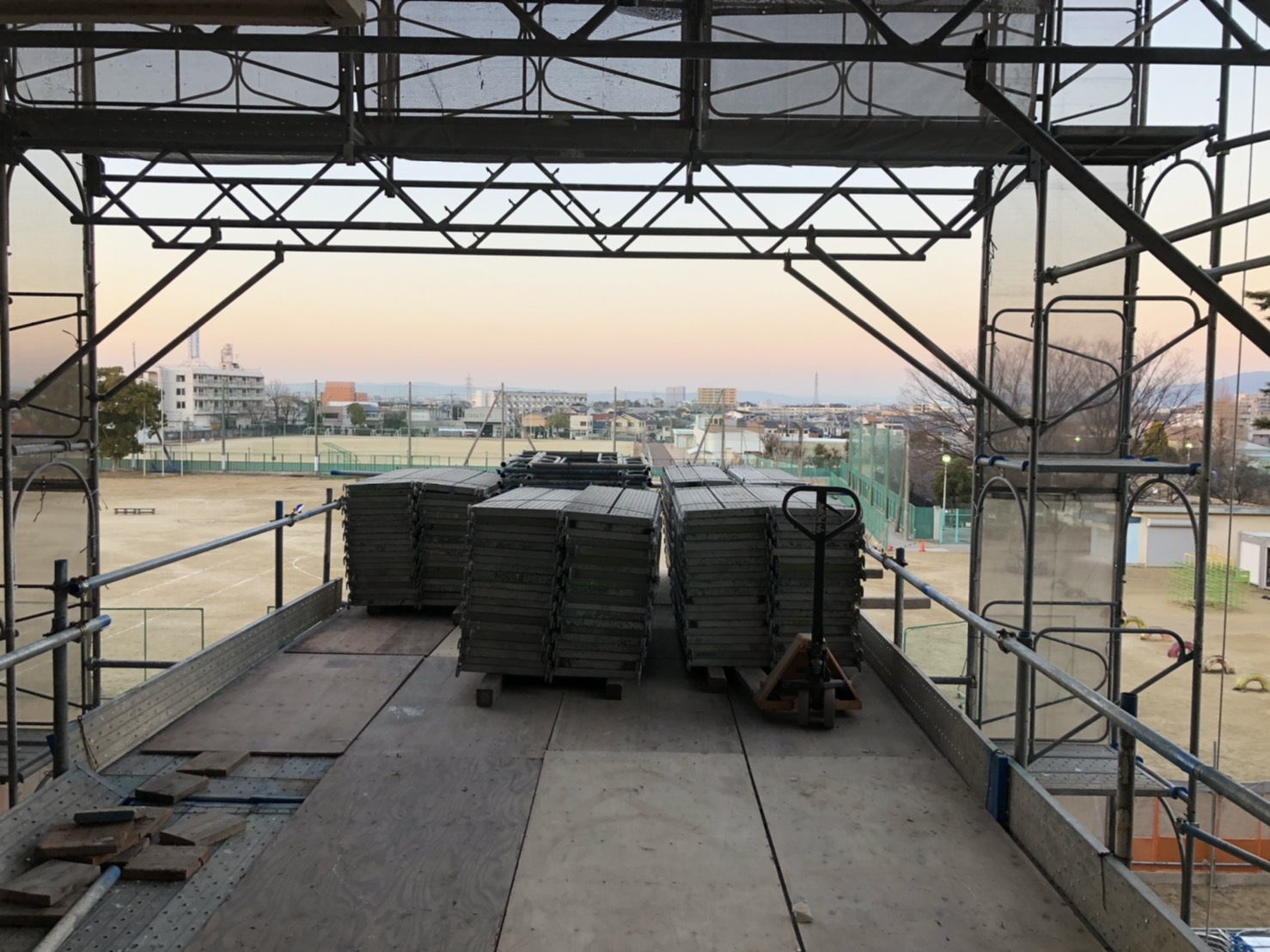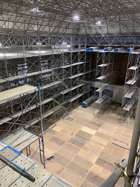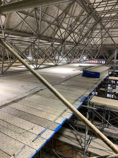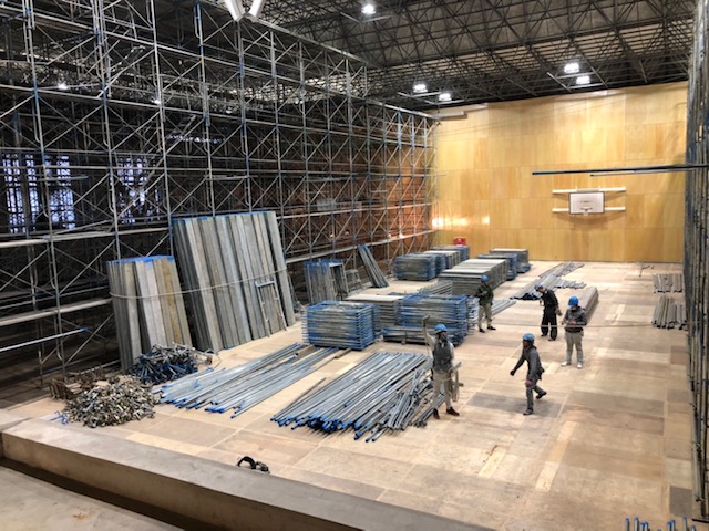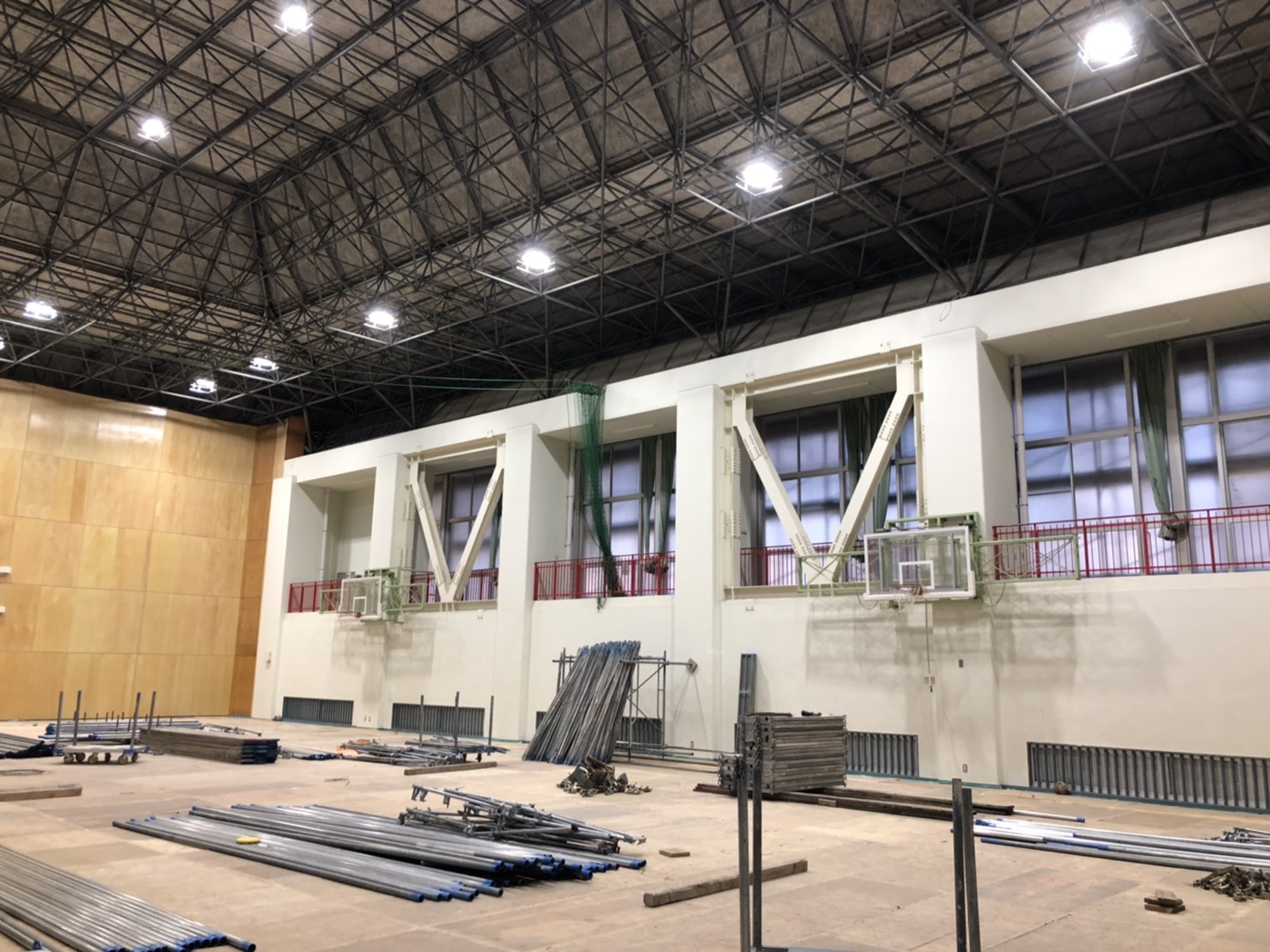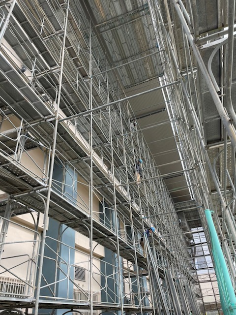 体育館の棚足場の解体はじまります。