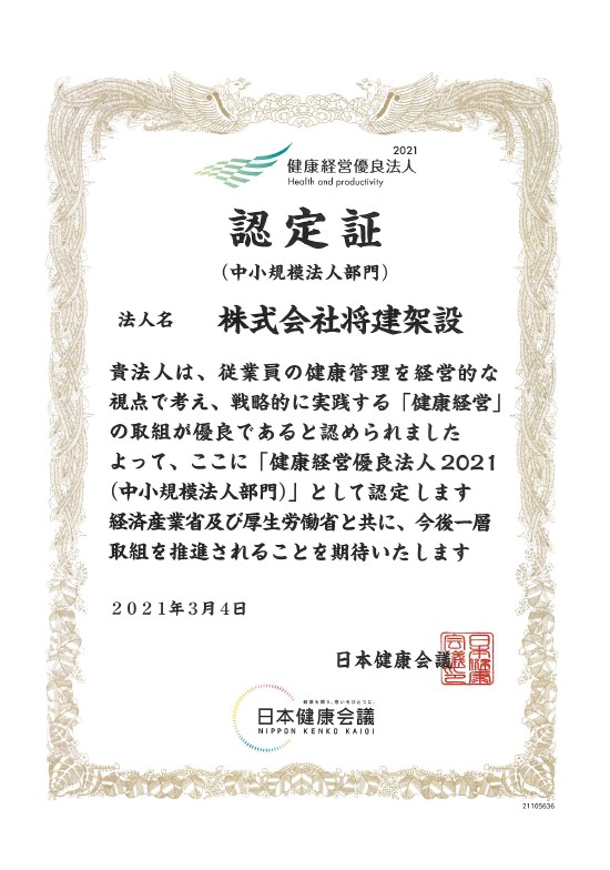 2021年度の健康経営優良法人に認定されました。